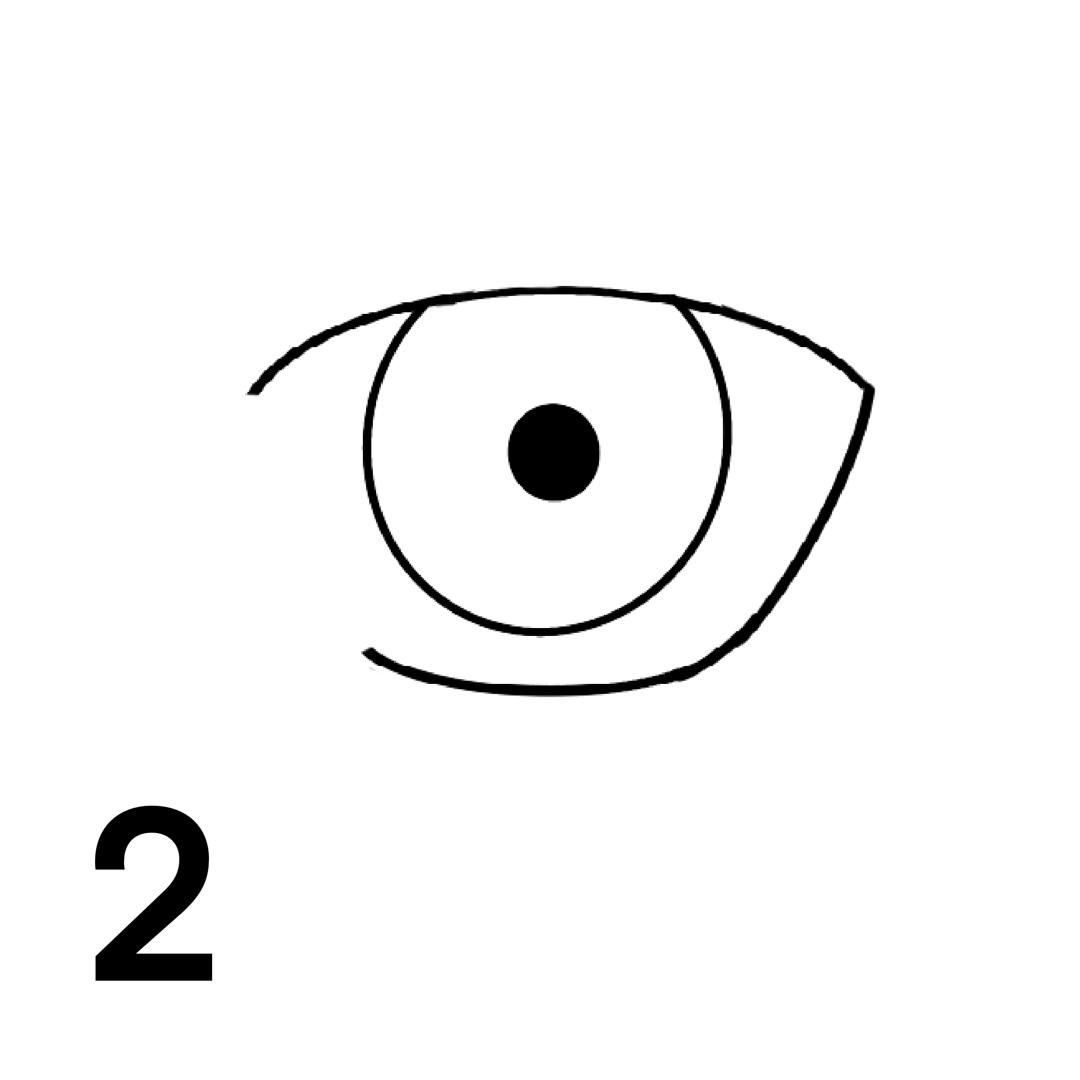 * عنبیه: یک دایره بزرگ در مرکز که بخش بالایی آن کمی زیر پلک بالا پنهان شده است. یک نقطه تیره (مردمک) در وسط قرار دهید.