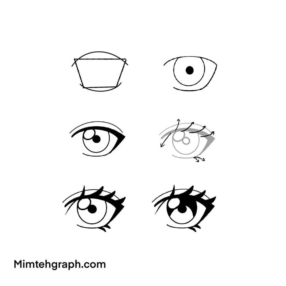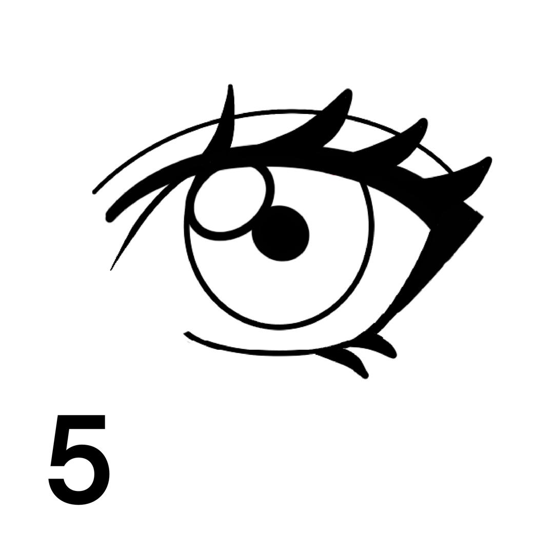 - تنوع در حالت: با تغییر زاویه ذوزنقه اولیه، میتوانید چشمهای خمار، جدی یا متعجب طراحی کنید.
